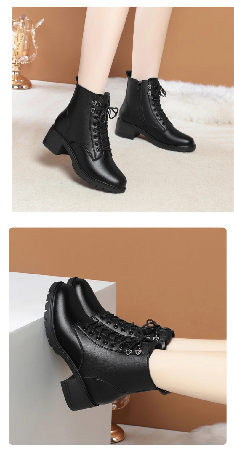 Winter Warm Short Plush Ankle Boots Women Fashion Zip Lace Up Platform Combat Boots Woman Comfy Low Heels Pu Leather Botas Mujer