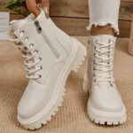 Be the first to review “Winter Warm Short Plush Ankle Boots Women Fashion Zip Lace Up Platform Combat Boots Woman Comfy Low Heels Pu Leather Botas Mujer” Cancel reply
