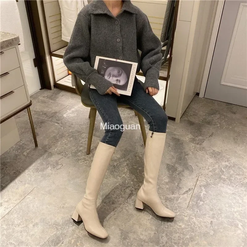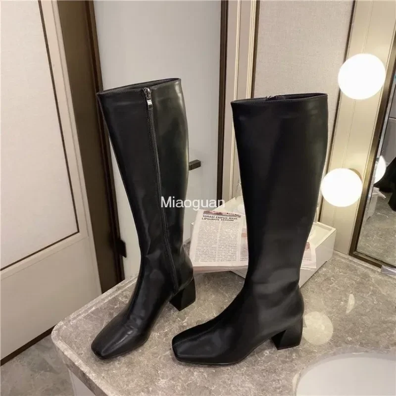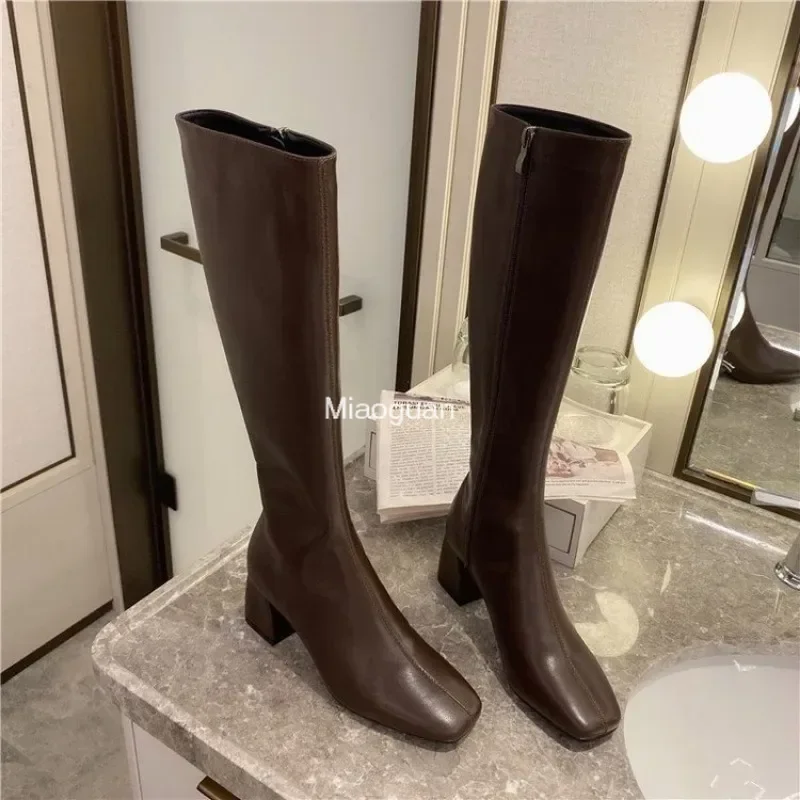 Home Boots Women Warm Long Boots Woman Knee High Booties Ladies Shoes Platform Thick Heel PU Leather Soft Zipper Woman Fashion Winter 2023